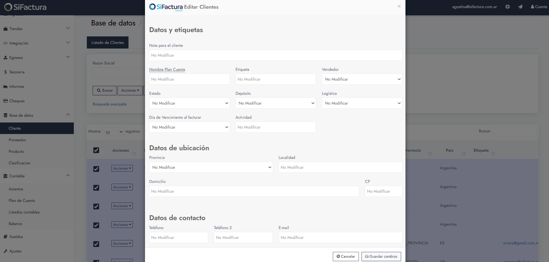 Haz clic en Guardar cambios para aplicar la edición sobre los clientes seleccionados.