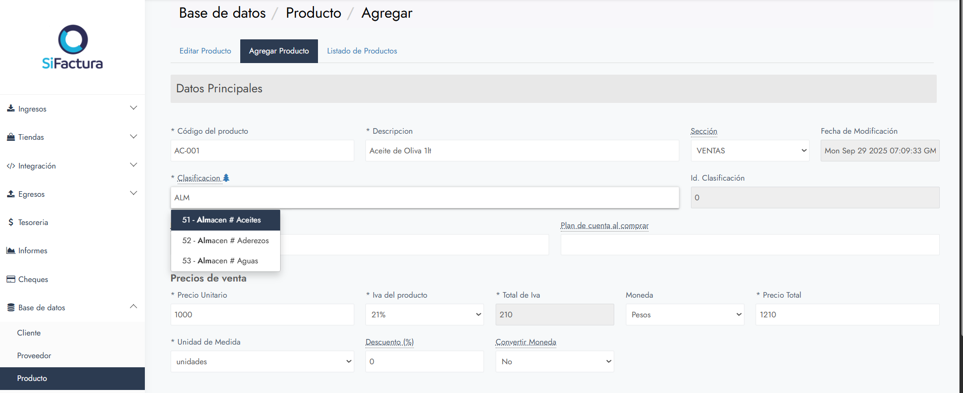 Las clasificaciones te permiten agrupar tus productos bajo una misma categoría o unidad de negocio, facilitando la organización, las búsquedas y los reportes.