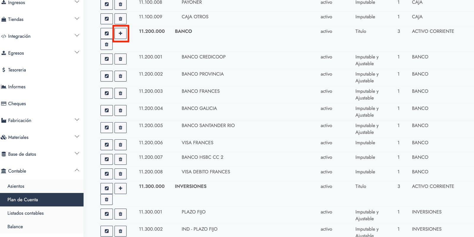 Ubica la cuenta principal en la que deseas crear la subcuenta (por ejemplo: Banco).