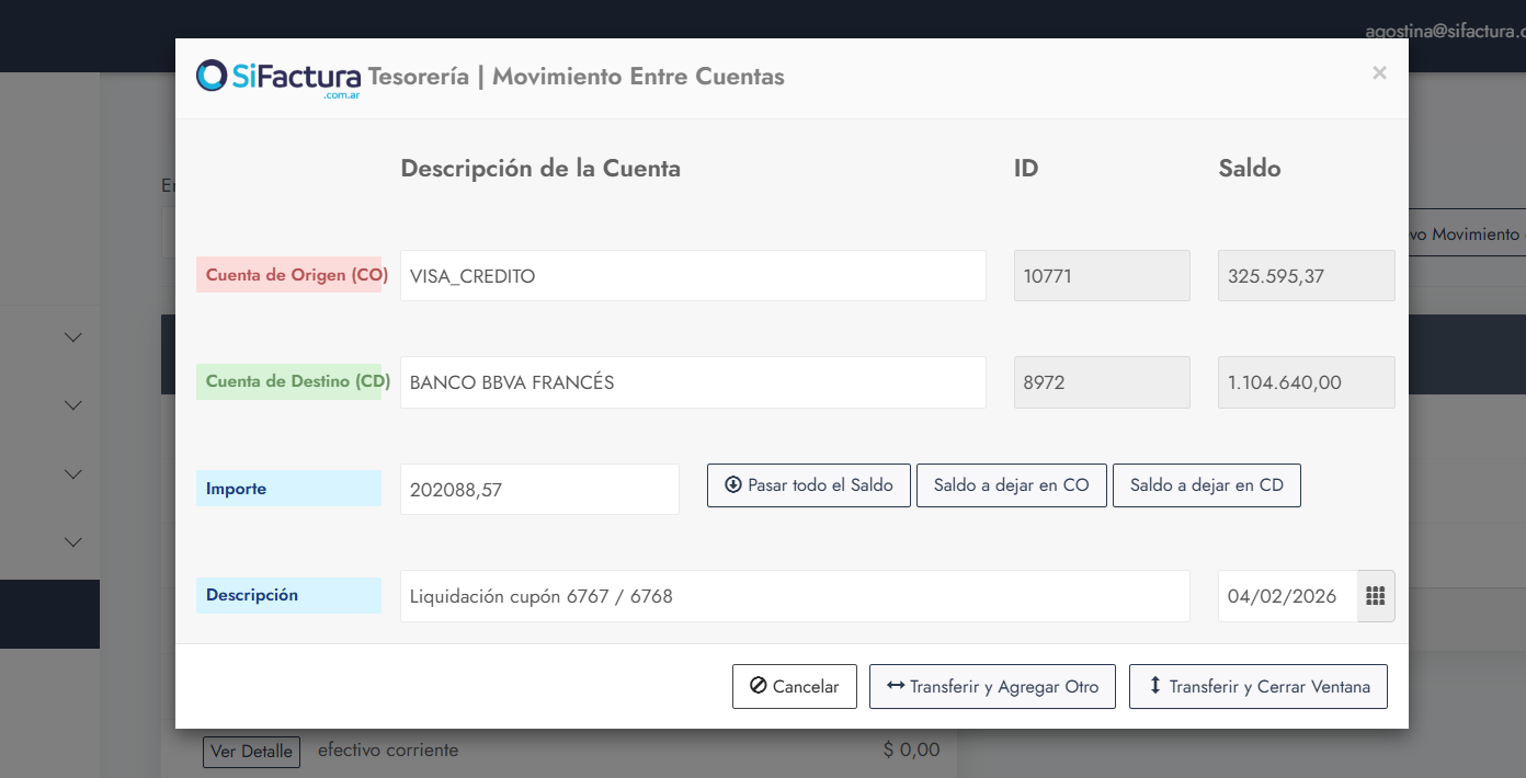 Verifica que el movimiento entre cuentas refleje correctamente el ingreso.